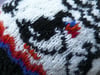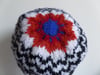 The pattern is knitted from the brim and is available in six sizes. The pattern is only worked in two shades at any one time. Colour details on the beak and feet are added to one Puffin motif using duplicate stitch after the tam is knitted.