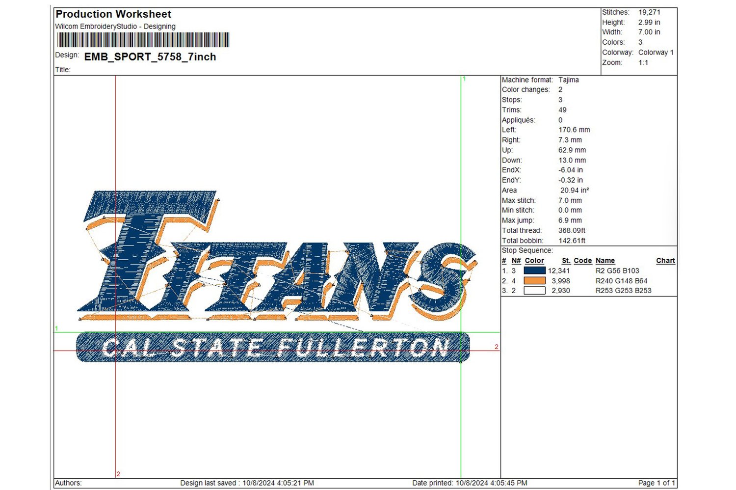 Ncaa Cal State Fullerton Titans Wordmark Embroidery Design Files, Ncaa Logo Embroidery Files, California State University, Fullerton Logo Embroidery Design, NCAA CSUF Titans Machine Embroidery Design, Digital Download