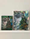 The left item is of the mounted print. It is based on the mixed media original, on the right hand side. The original is not for sale.