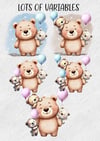 Father’s Day Bears. Birthday. Super adorable Daddy Bear and up to 3 children bears clipart. 2 backgrounds in blue or neutral & pink bows clipart.