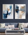 Immerse yourself in the soothing harmony of soft neutrals and deep blues with Tranquil Reflections, a modern abstract set of 2 prints that brings serenity and sophistication to any space. The fluid brushstrokes and organic drips evoke a sense of movement and depth, making it a perfect statement piece for contemporary interiors.