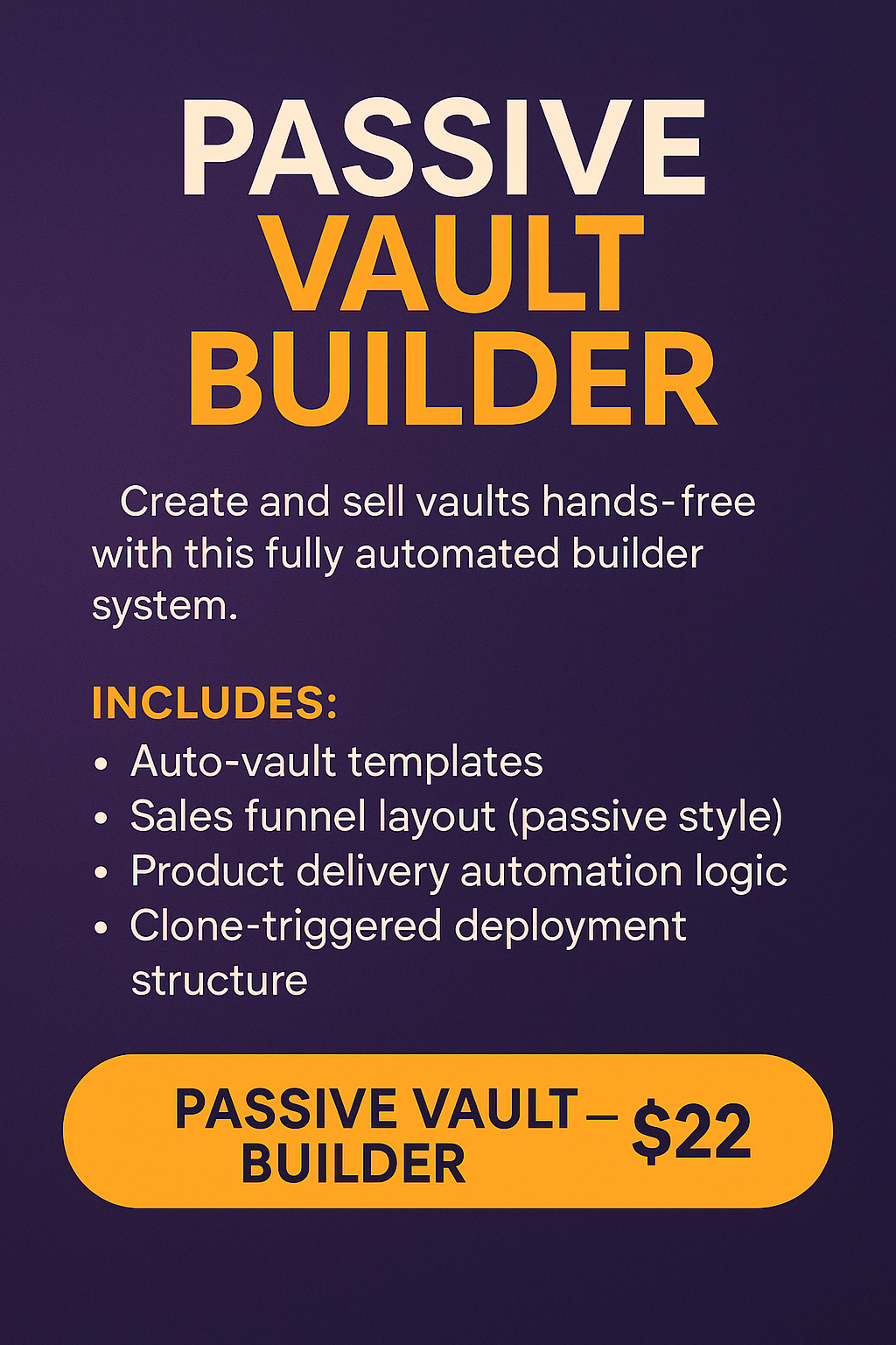 Create and sell vaults hands-free with this fully automated builder system. Designed for creators scaling into autopilot income.
