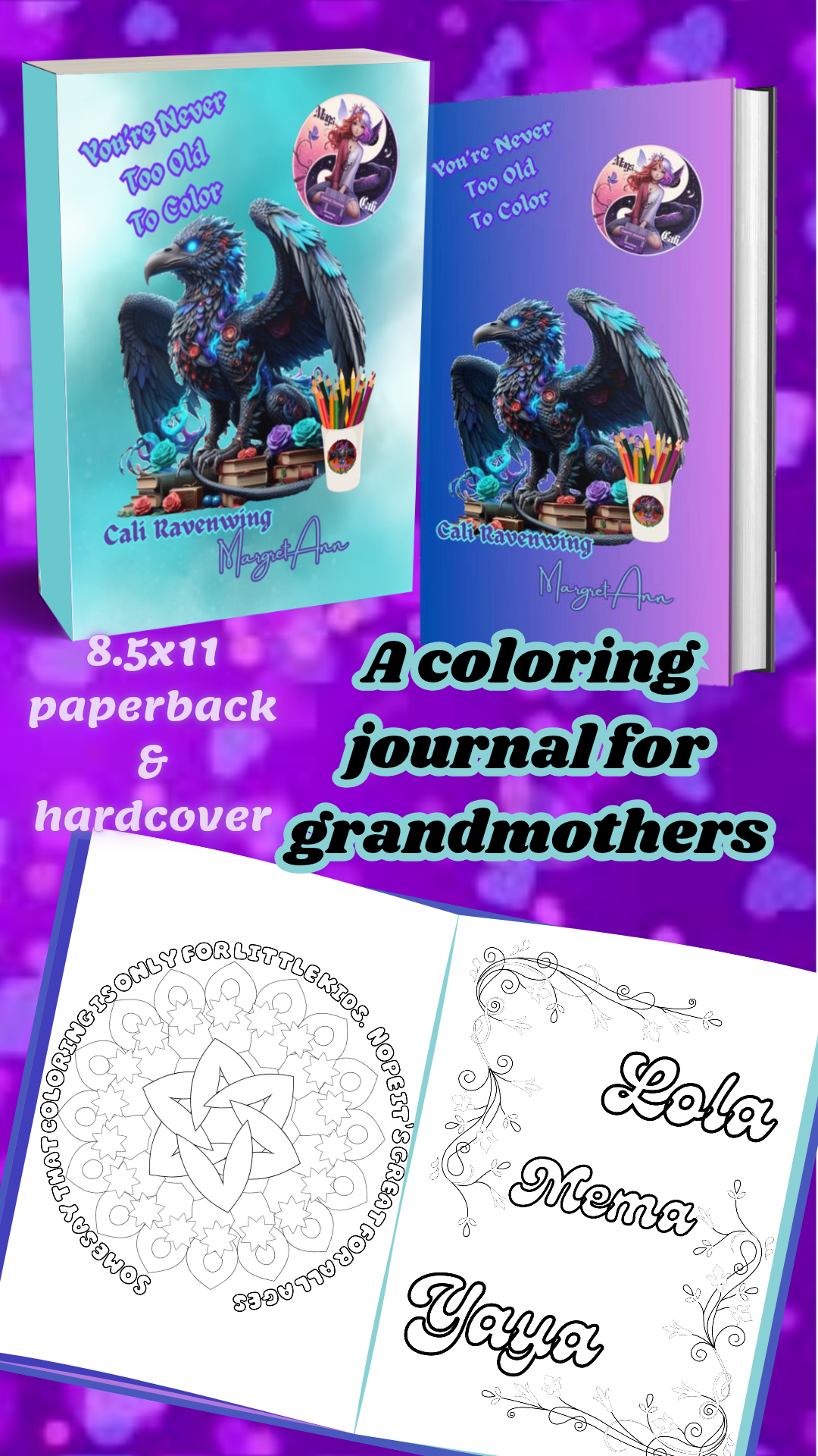 You're Never Too Old to Color Hardcover 8.5x11 - A Coloring Journal for Grandmothers by Cali Ravenwing