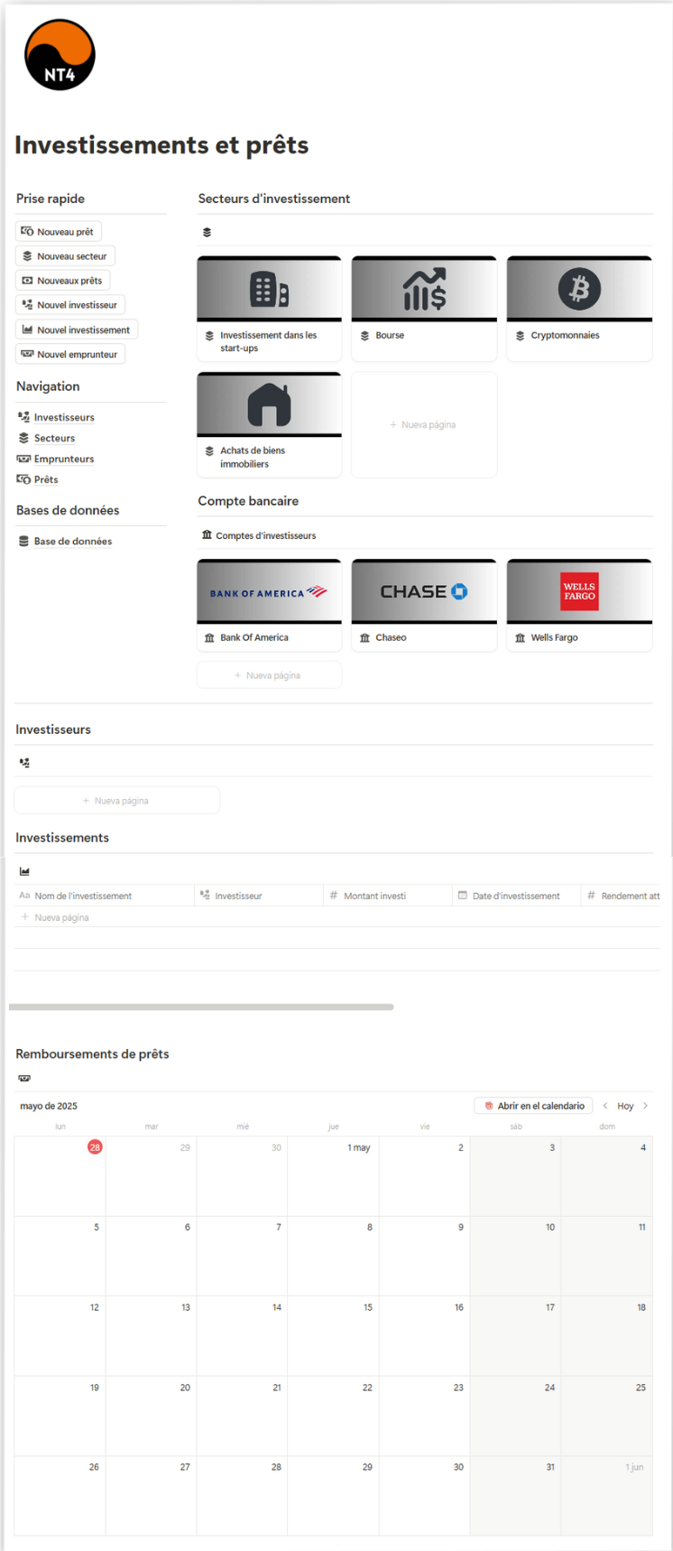 đ ModĂšle Investissements & PrĂȘts pour Notion