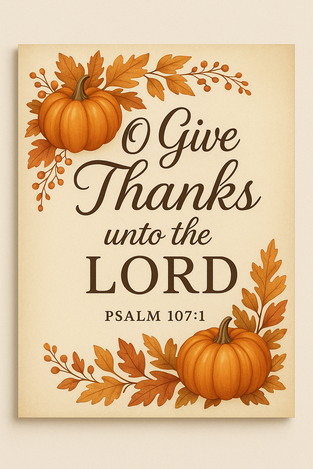 Celebrate the season of gratitude with this Autumn Scripture Poster, featuring Psalm 107:1 and a warm design of pumpkins, leaves, and berries. Perfect for devotional kits, Thanksgiving décor, or ministry gifts, this printable offers spiritual warmth and seasonal beauty.