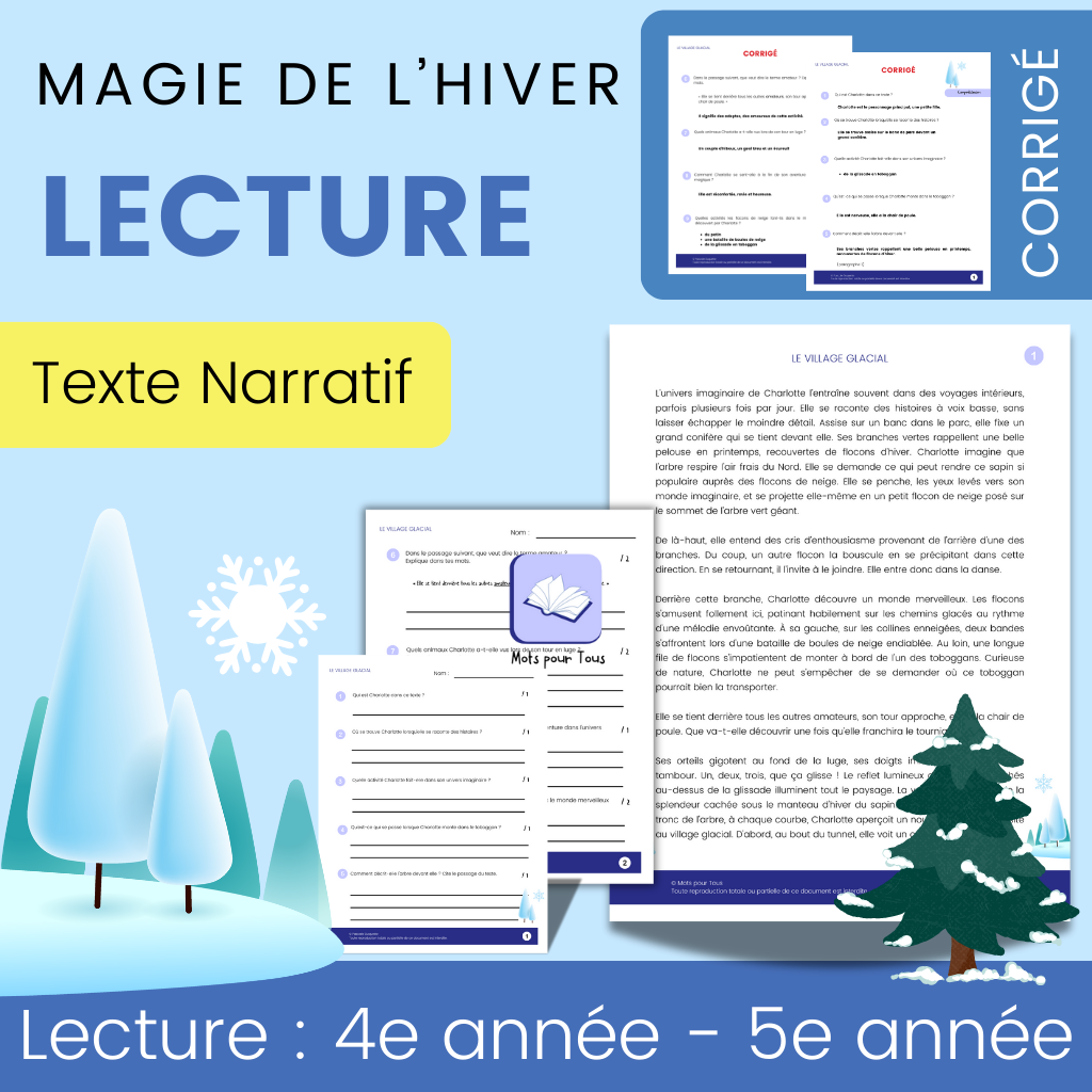 Découvrez le bundle “Spécial Hiver — 4 textes (narratif + informatif) – 2e cycle” : variété de genres, plus de questions, corrigés inclus.
