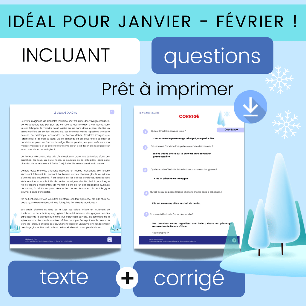 Magie de l'Hiver — Lecture 3e cycle : Le Village glacial (455 mots) | 11 questions + corrigé par dimensions