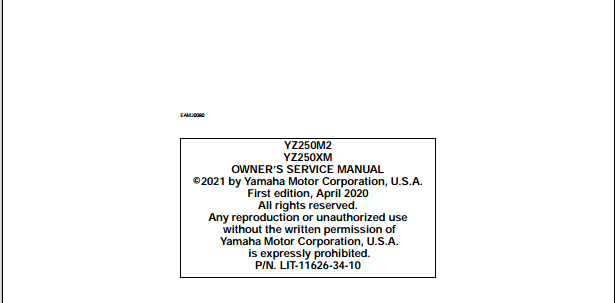 2021 Yamaha YZ250 YZ250X Owners Service Manual Part No. LIT-11626-34-10