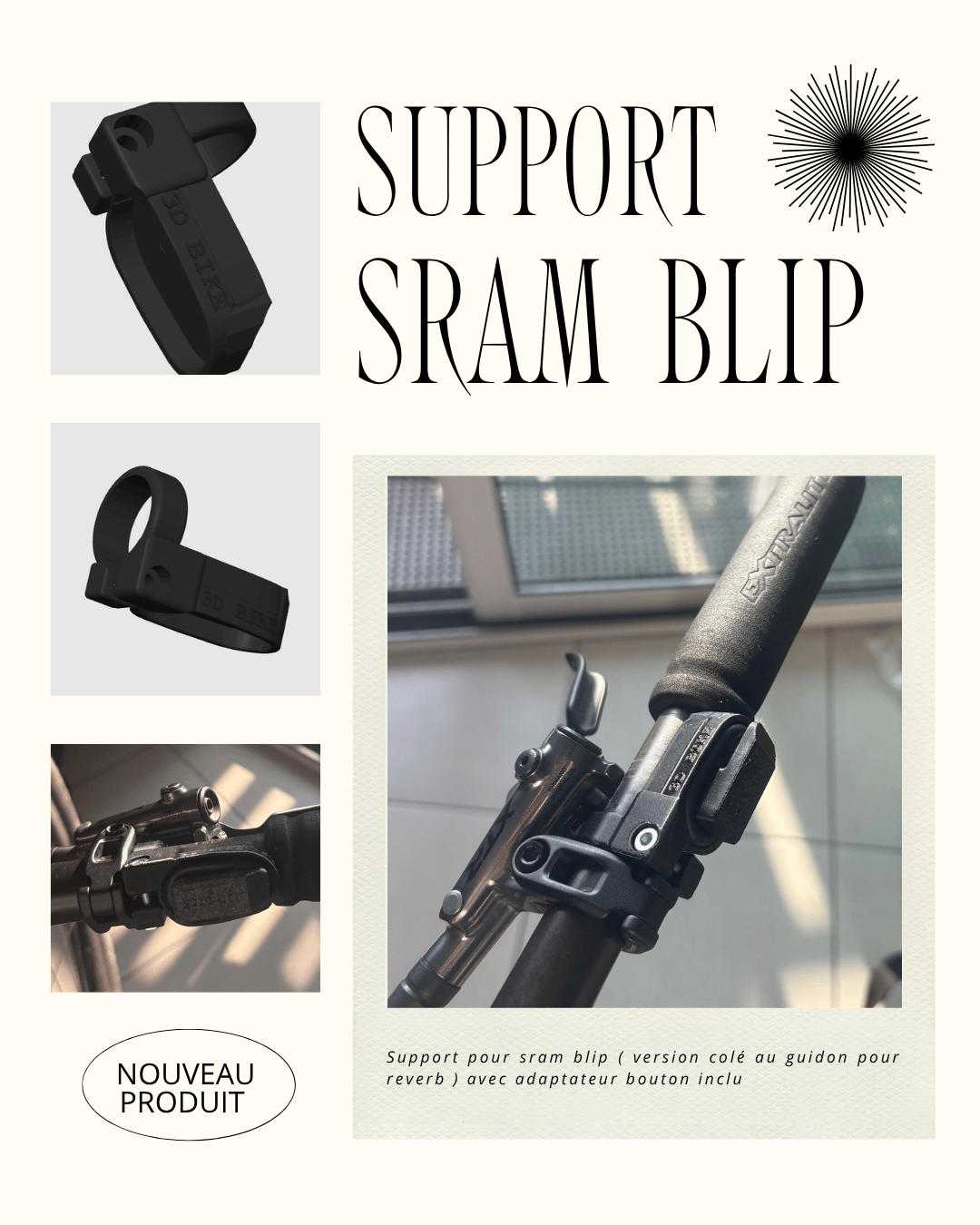 Support pour sram blip ( version colé au guidon pour reverb ) avec adaptateur bouton inclu