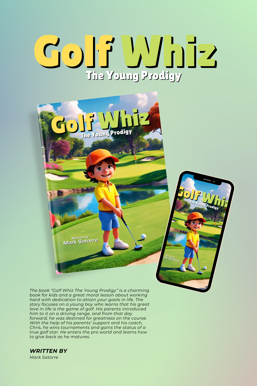 The children’s book *Golf Whiz: The Young Prodigy* is a charming story for kids, imparting a great moral lesson about working hard with dedication to attain one's goals in life. The story revolves around a young boy, Charlie, who discovers his passion for golf. Introduced to the sport by his parents on a driving range, he realizes from that day forward that he is destined for greatness on the course. With unwavering support from his parents and guidance from his coach, Chris, he triumphs in tournaments, earning the status of a true golf star. As he transitions into the professional golf tour, he learns valuable lessons about giving back and matures both on and off the course.