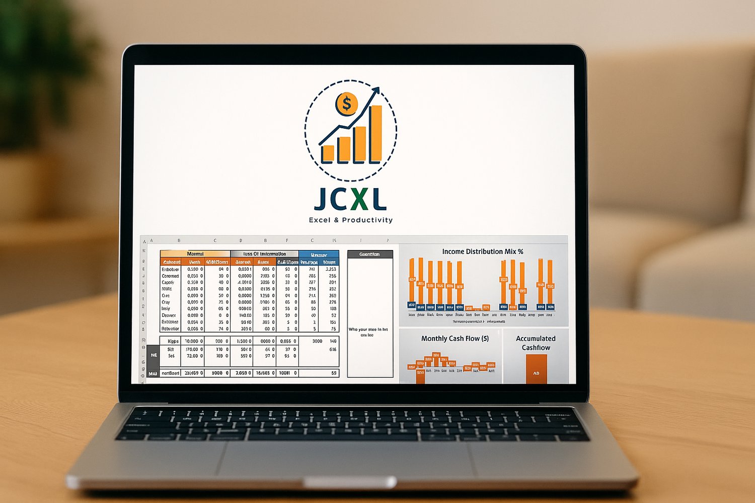 I offer a clear and structured way to track your income, savings and expenses, month by month.