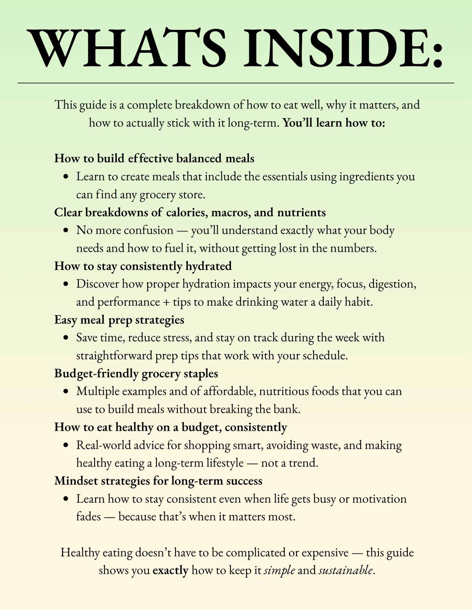 Whether you lift, walk, work long hours, or just want to feel better in your daily routine, this guide gives you the foundation to fuel your body and improve your nutrition for life.