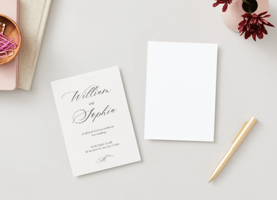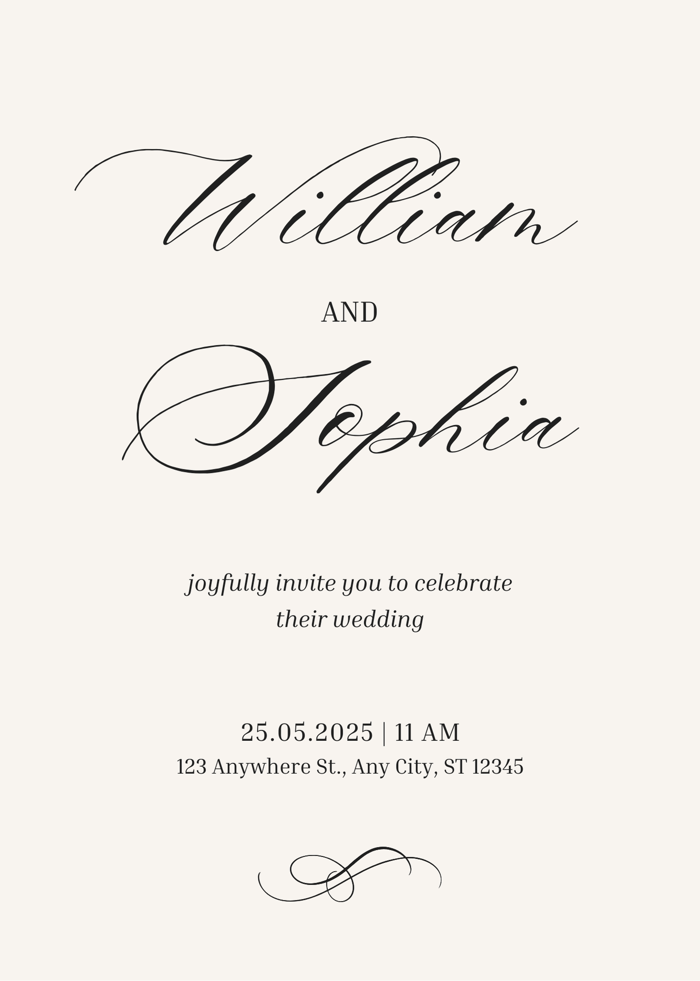 This timeless wedding invitation design pairs sophisticated calligraphy with a clean, cream-toned layout. Perfect for formal ceremonies or traditional weddings.