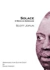 Scott Joplin (1868-1917) is the father of ragtime, and as such a huge influence on the development of American — indeed worldwide &mdash popular music. Solace is one of his later published works. Although Joplin frequently instructs the player that "it is never right to play 'Ragtime' fast", here the tempo indication is quite explicitly slow — aim for a quarter-note of around mm 50. The languid syncopations and delicate chromaticism are enhanced by the necessary compromise, in arranging for guitars, of bringing the melodies and the accompanying patterns into closer proximity: with a careful ear for balance in performance, the effect is magical.