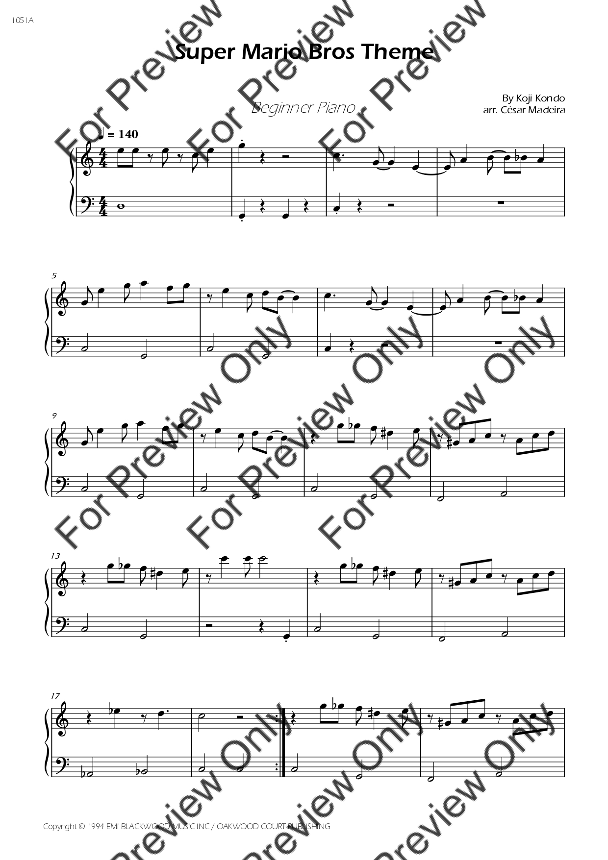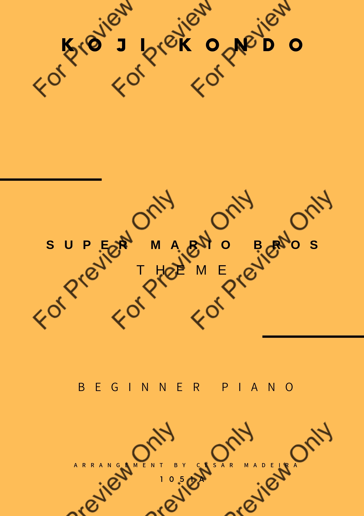 The Super Mario Bros Theme. Arrangement for Beginner/Easy Piano. With Full Score. Have fun!