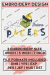 Christmas Grinch Face x Indiana Pacers NBA Basketball Team Embroidery Designs, Grinch Embroidery Files, NBA Pacers Basketball Team Logo Embroidery, Merry Christmas Machine Embroidery Design, Digital Download