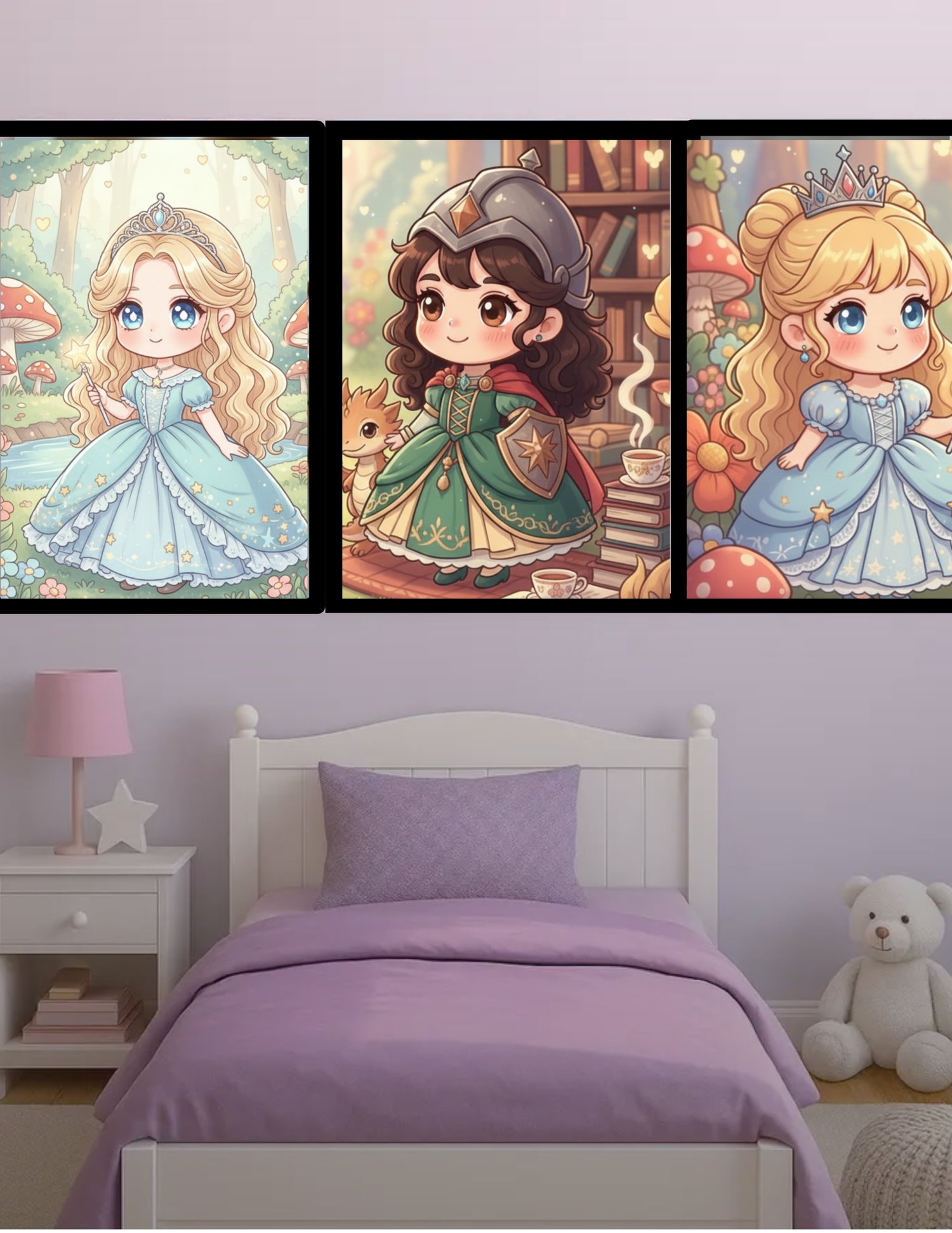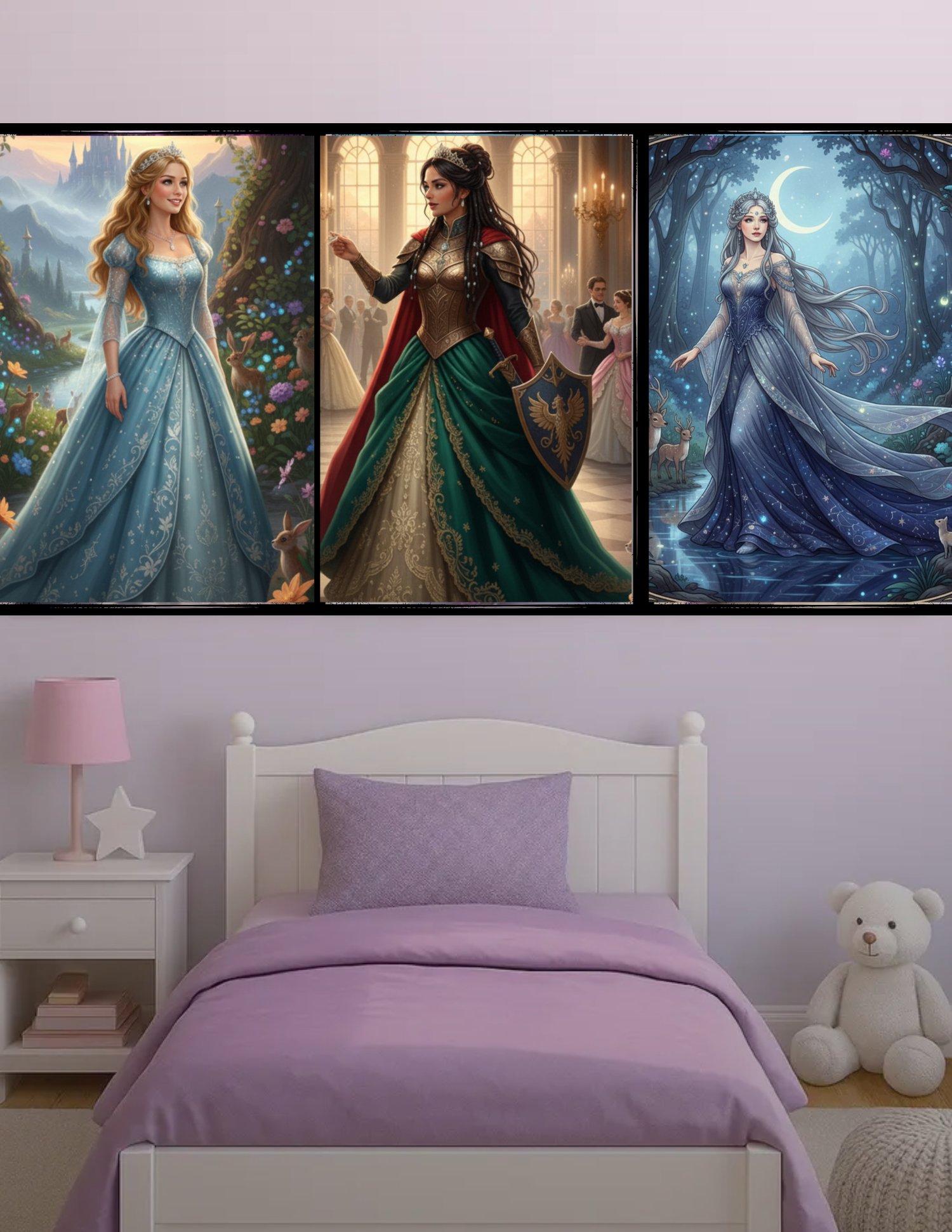 Add a touch of royal magic and gentle kindness to your little one’s sanctuary. Our Enchanted Grace illustration is more than just wall art; it’s a celebration of innocence, wonder, and the sweet spirit of every little girl.