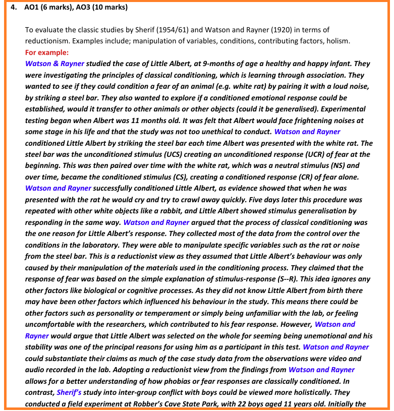 Created by experienced Psychology teacher and examiner, previous Head of Department. Can be used by students or teachers.