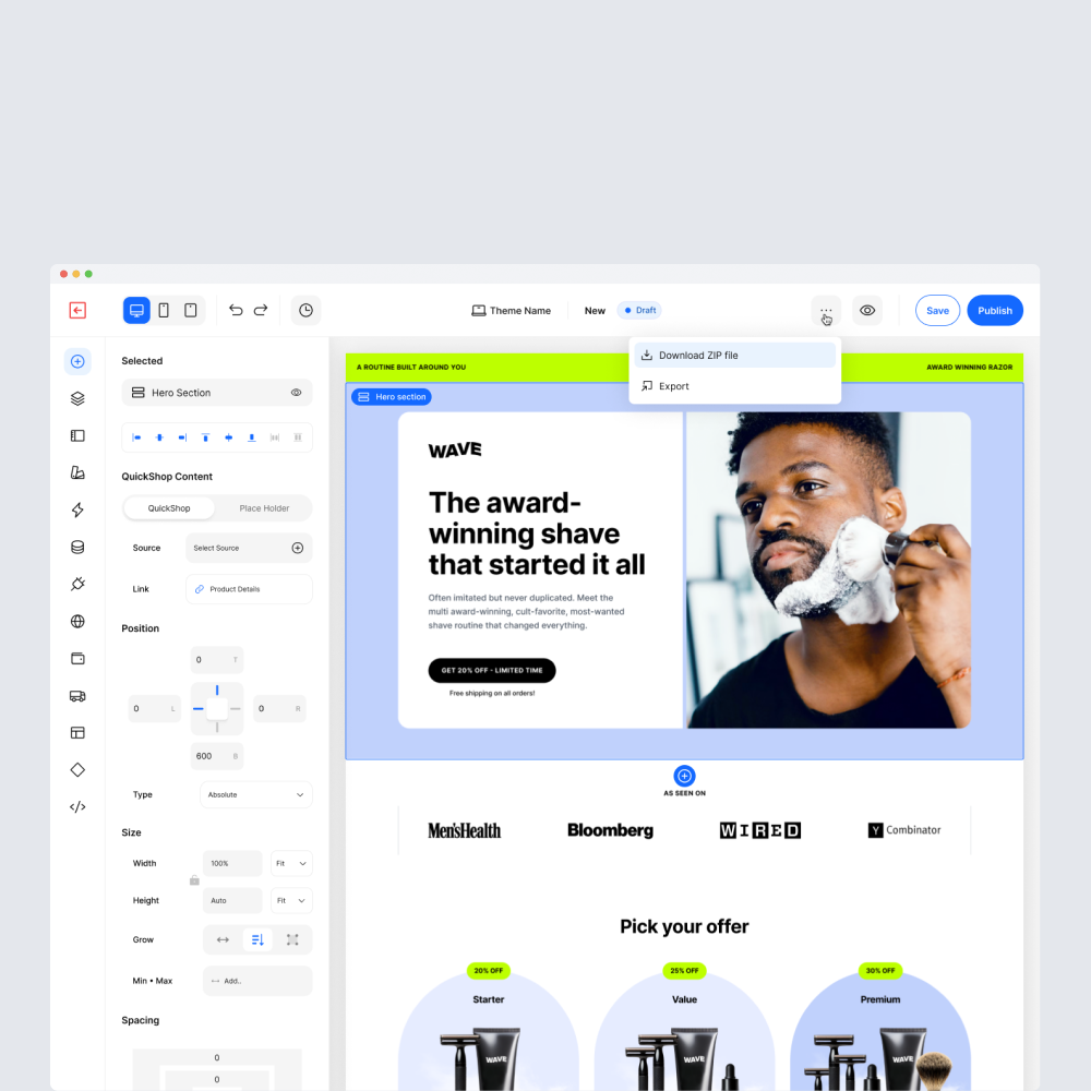QuickShop is a comprehensive, modern, and highly customizable No-code E-commerce Store Builder UI kit designed for businesses, developers, and entrepreneurs looking to create robust online stores without writing a single line of code. Tailored for enterprise Businesses, QuickShop offers a seamless user experience with an intuitive interface and powerful features to build, customize, and manage a full-fledged e-commerce platform with ease.