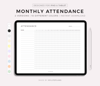 Monthly Attendance, Landscape, Digital Template for Goodnotes, Notability, Ipad