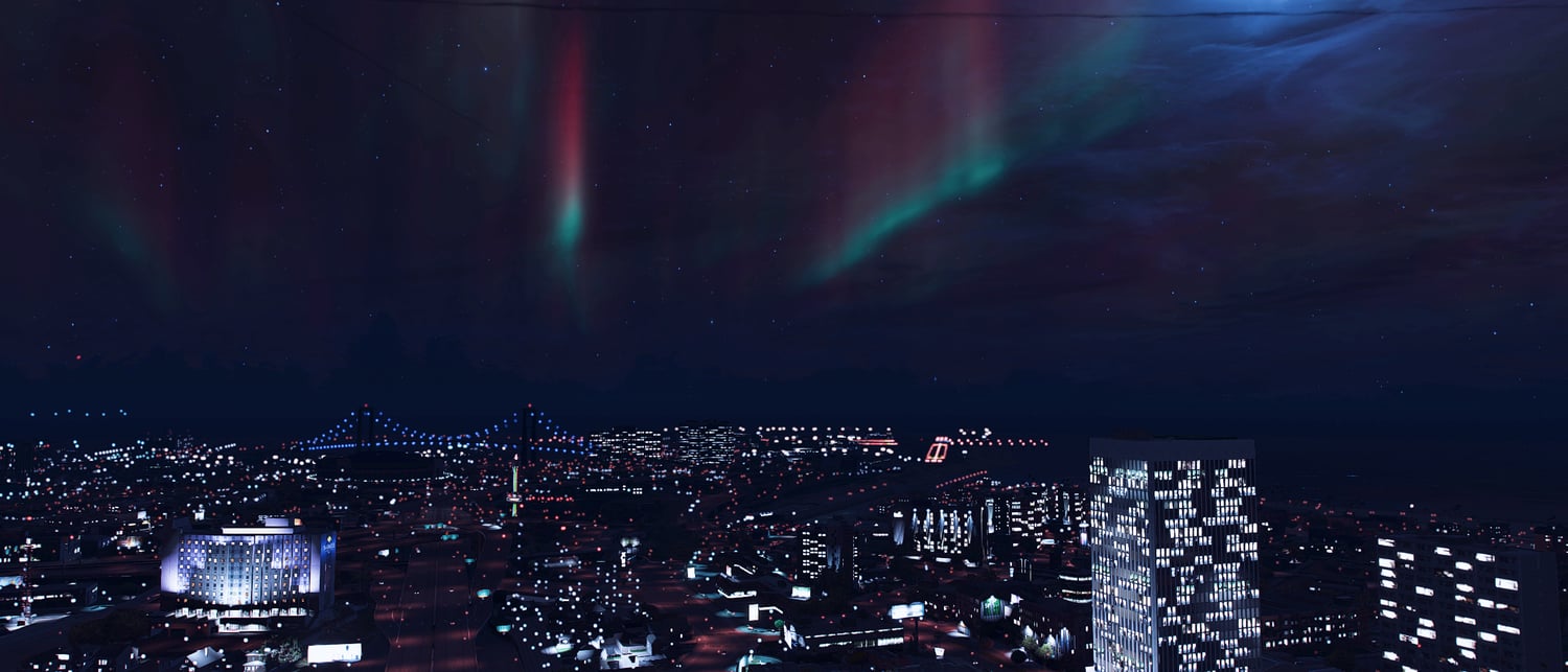Immergez-vous dans un ciel nocturne légèrement rouge, sublimé par un ciel étoilé avec des aurores boréales rouges et vertes. Créant une atmosphère magique et spectaculaire, idéale pour les scènes RP, et contenus stream.