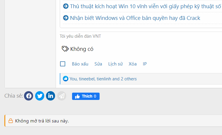 - Lock Threads: Có thể khóa chủ đề nhưng không thể mở khóa chủ đề.