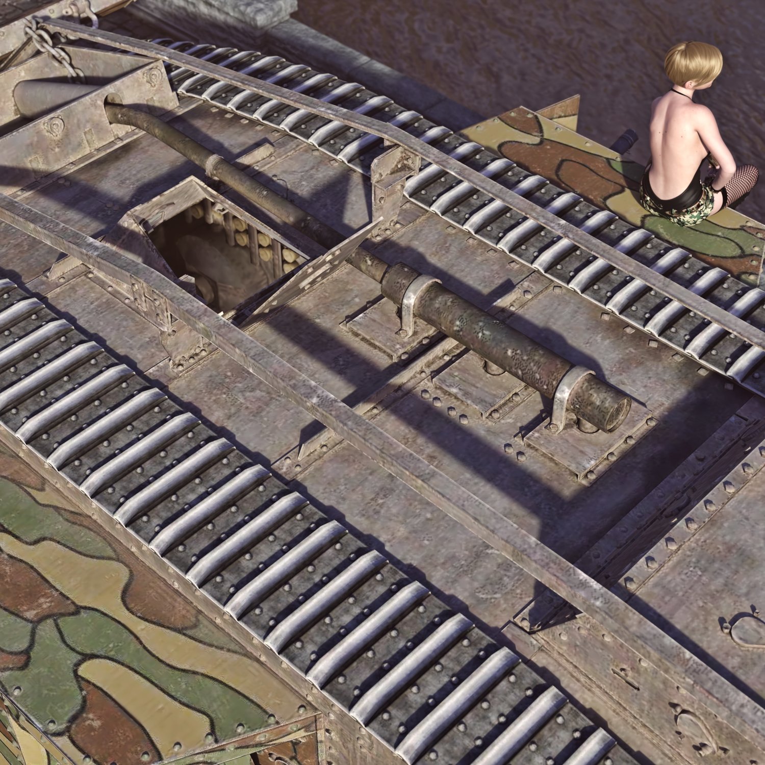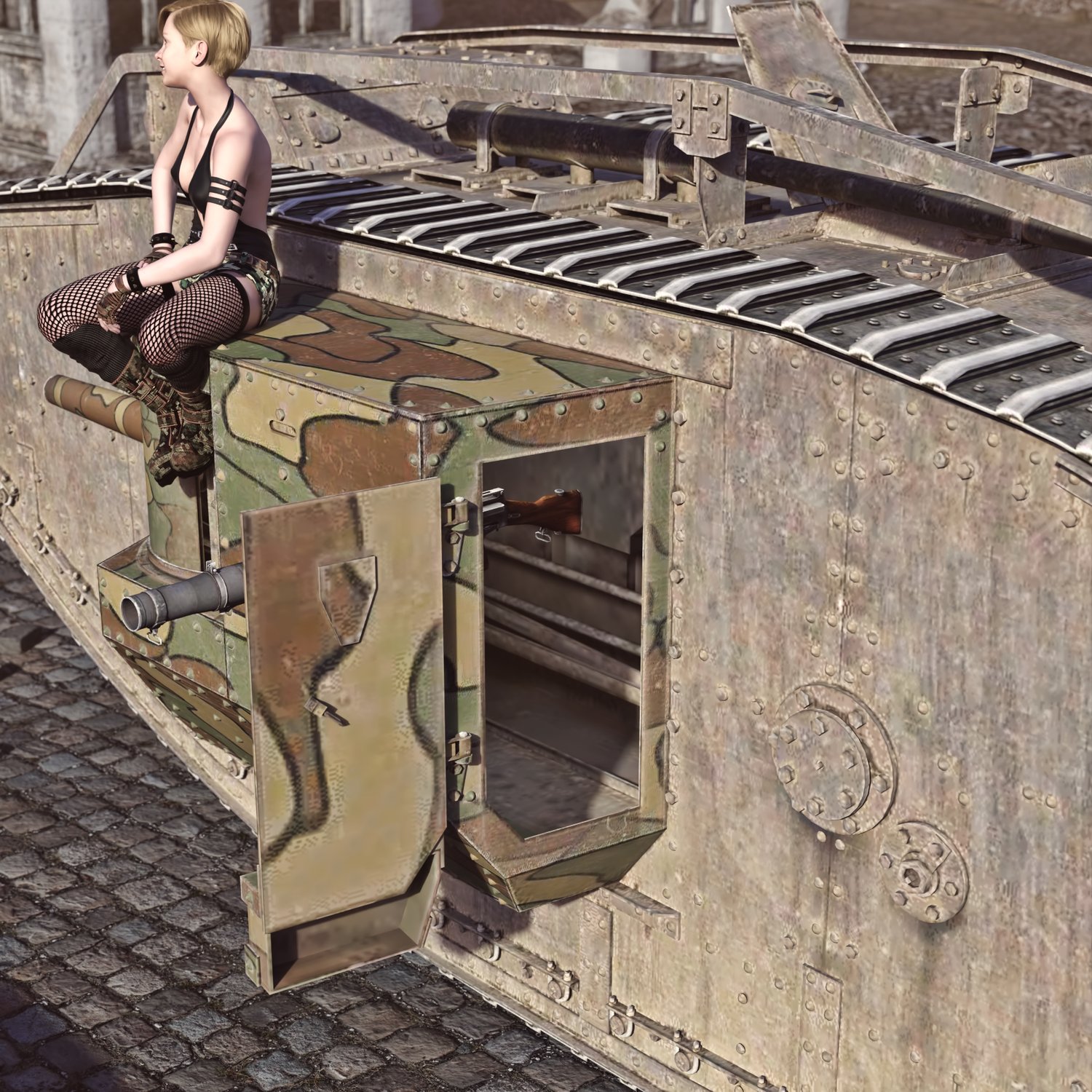 Can't go more vintage than this :D One of the first tanks, and the first one to be mass produced and used in combat en masse. Hatches are rigged for better dismount and more realistic pics. Though they probably don't help a lot with the hottest conditions inside. The side turrets also rotate and the guns pivots. Has a gun and a MG on each side and an MG at front. Amazing piece of history, now for your DAZ pictures. Upper hatch and front viewing hatches also rigged, for added coolness. The prop is converted and rigged for DAZ.