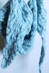 Vire is sized based on gauge — it is pictured in worsted weight, making a narrow piece, large enough to wrap around your neck like a short scarf, but very thick and warm because of the cables. Use a heavier weight to make a longer version. (Detailed sizing info is in preview PDF.)