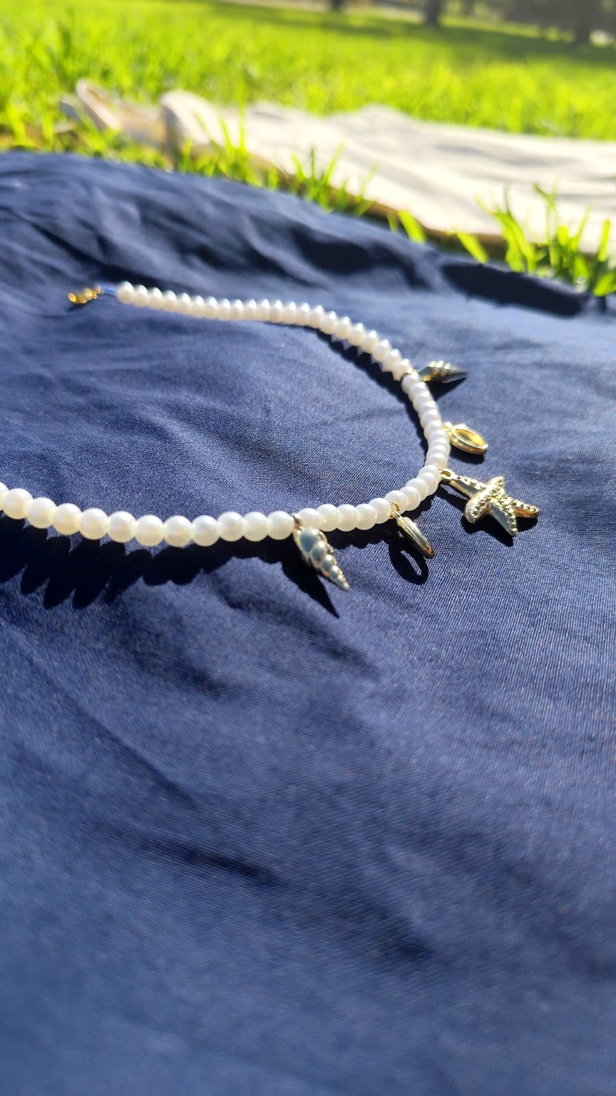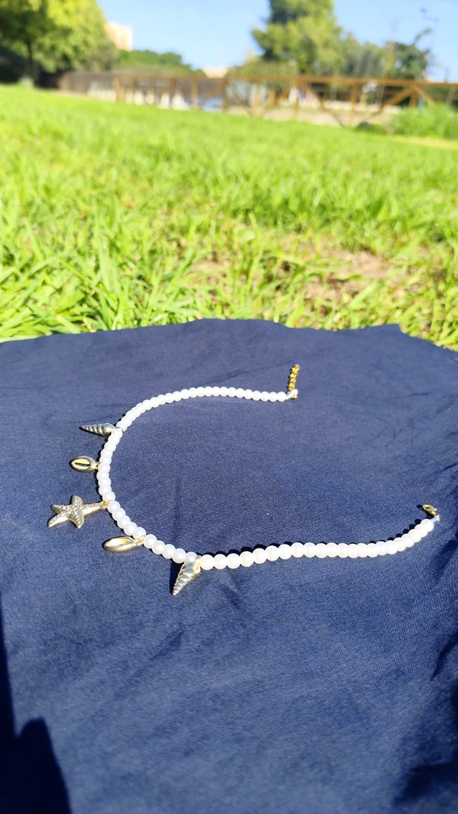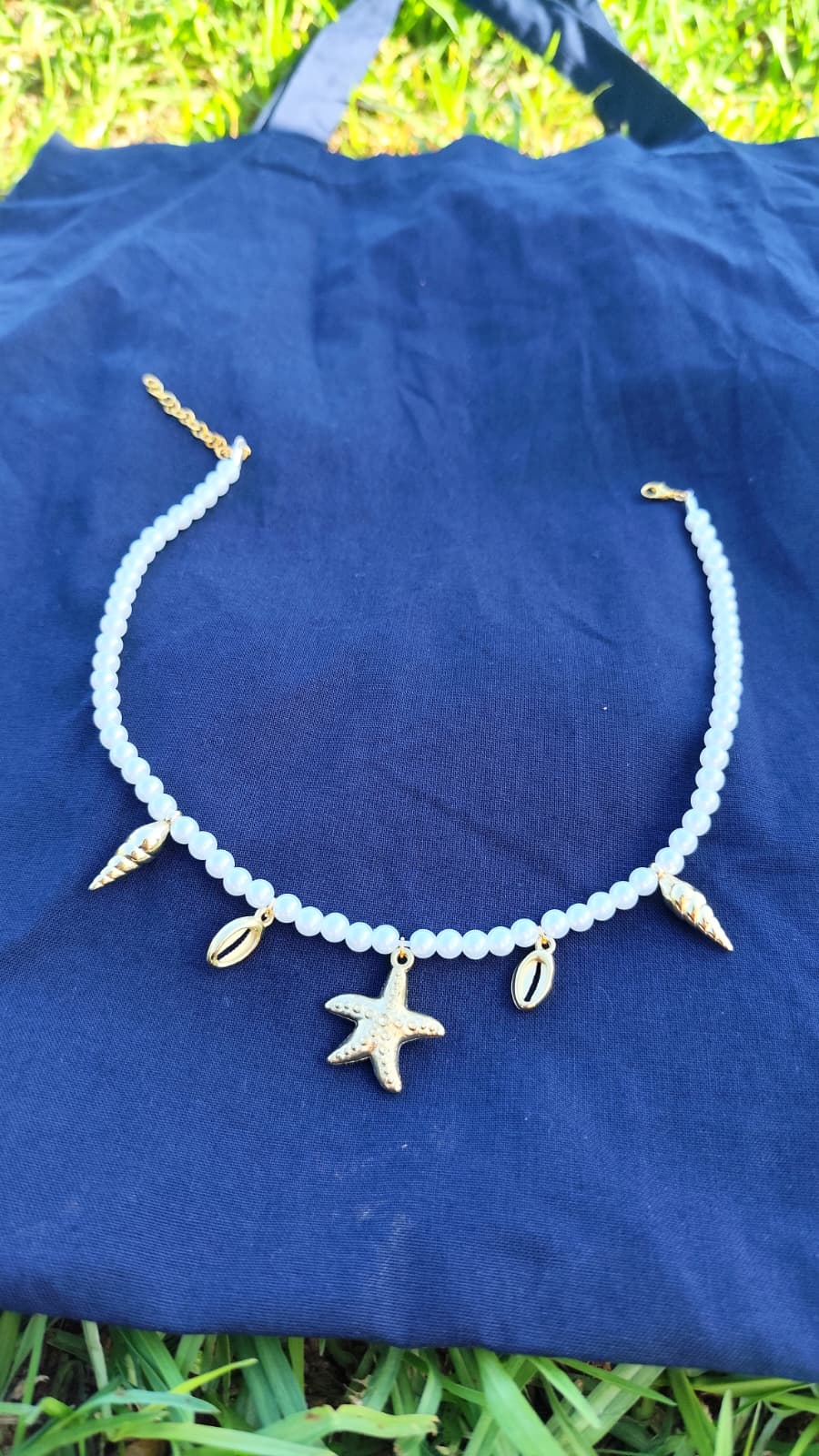 Este collar de estrellitas y conchitas marinas con perlitas blancas es la combinación perfecta de frescura y encanto. Las perlitas aportan un brillo suave y delicado, mientras que las estrellitas y conchitas le dan un toque muy marino y natural que lo hace irresistible. El diseño es ligero, armonioso y súper bonito, ideal para quienes buscan un accesorio que aporte estilo con un aire veraniego y dulce.