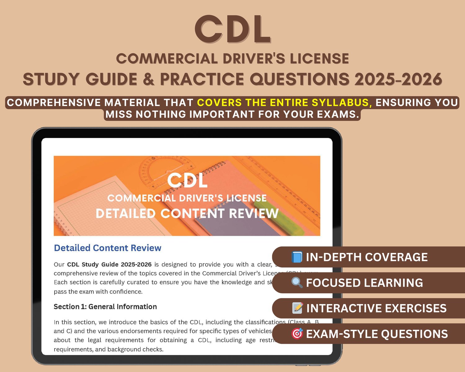 Are you ready to accelerate your journey toward obtaining your Commercial Driver's License (CDL)? Look no further than our comprehensive and meticulously crafted CDL Study Guide, designed to propel you toward success in the 2025-2026 CDL exam. π