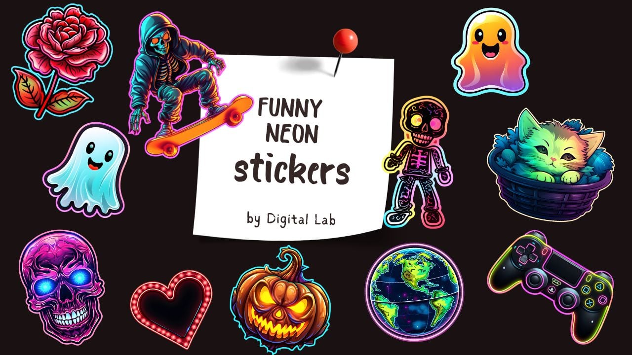 Neon & Glow – Set of 25 Funny Neon Glow Stickers (Digital PNG Pack)