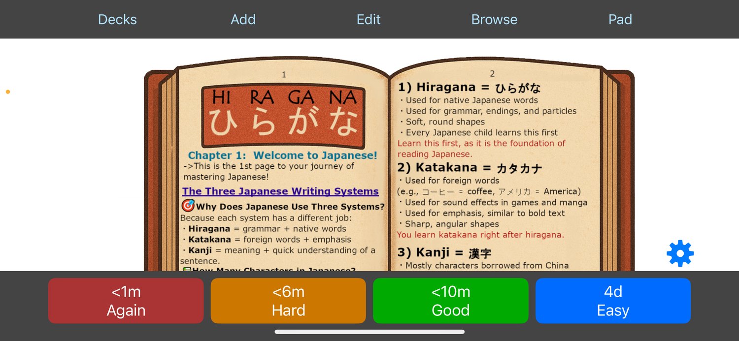 A complete Mobile, iPad or PC Hiragana and Katakana learning Anki Deck, designed to help beginners quickly master the foundations of Japanese reading.