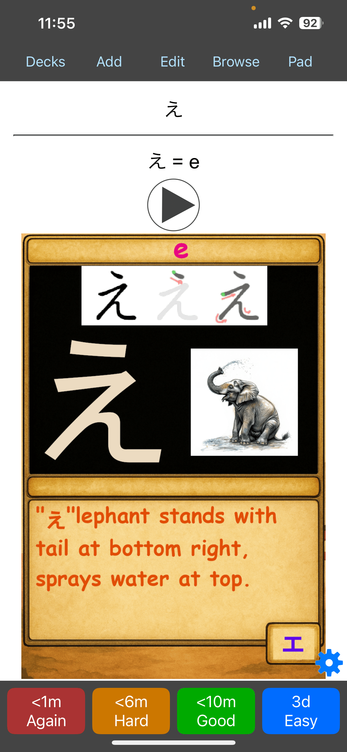 • Mnemonic cards to help you remember each character more easily
