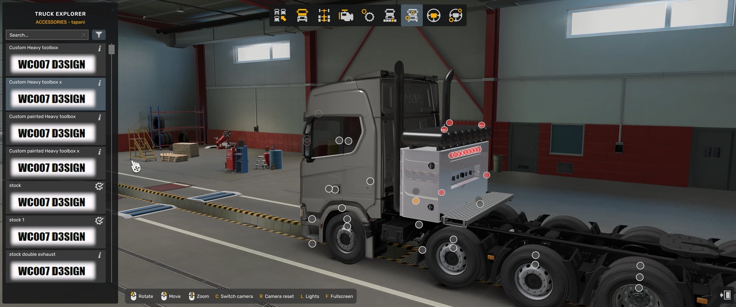 MOD description: Special toolbox with exhausts for Scania NG 8x4, 10x4, 10x6 chassis, which is suitable with all cab spoilers not only short spoilers.