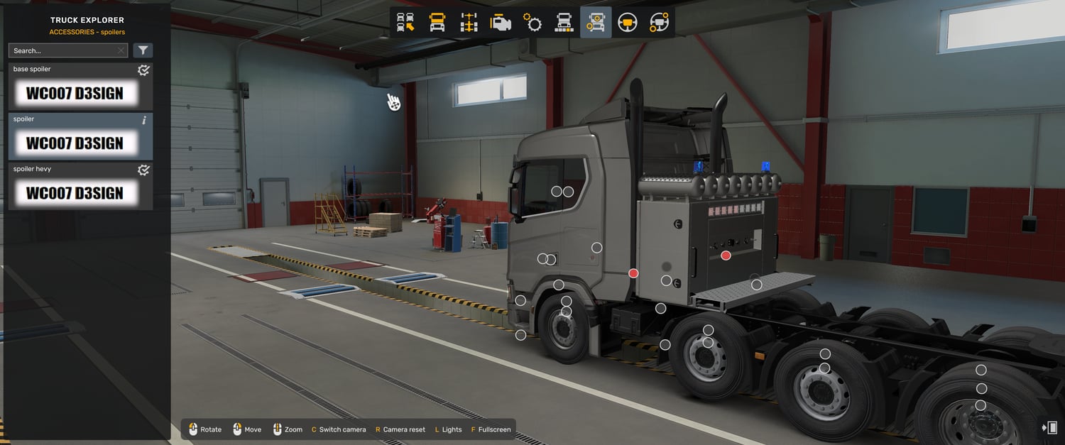 This mod works only with scania no spoiler mod V2, not work with V1 version and Base game Scania truck