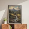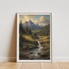 River Valley Oil Painting | Mountain Landscape Wall Art | Scenic Nature Print
