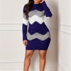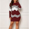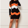 Mid length short skirt round neck long sleeved printed knitted buttock wrap dress