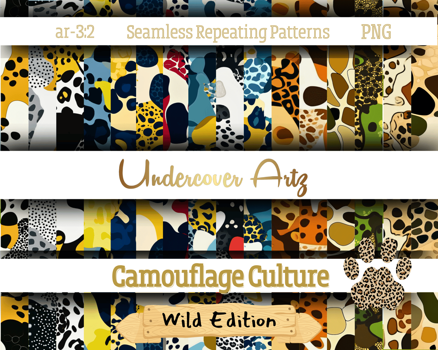 Unleash the untamed! The Camouflage Culture: Wild Edition blends the rugged edge of camo with the fierce beauty of leopard print in one bold, unapologetic collection. Whether you're designing apparel, accessories, or digital artwork, these seamless repeating patterns will bring your creations to life with a wild twist.