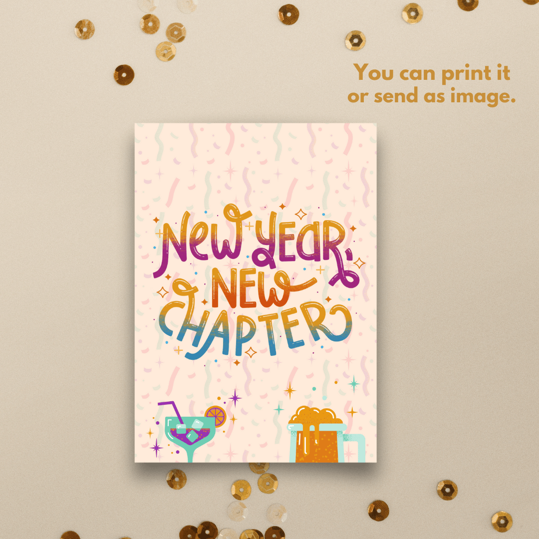 [FREE] Cute Cheerful and Colorful New Year New Chapter Canva Template Card Flyer Printable Graphic Design