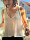 Introducing Dear Louise, this latest addition to your wardrobe essentials:a new knitted top, crafted from luxurious 100% linen yarn. This must-have piece boasts a charming short-cut design, offering a relaxed yet chic silhouette. With a touch of modern flair, its slight oversized fit exudes effortless style and comfort. The standout feature? A sporty racerback, adding a hint of athleticism to its sophisticated appeal. But there's more – this versatile top comes with the added bonus of two-layer wearing, allowing you to explore various styling options and effortlessly elevate your look. Embrace versatility and elegance with this timeless wardrobe essential.
