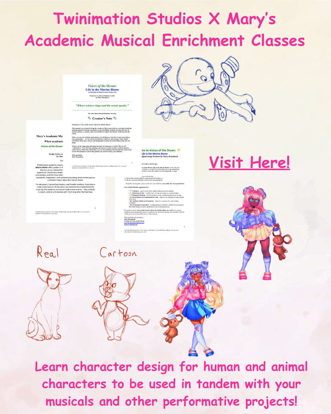 Upon purchasing, you will receive the Voices of the Nile Script by Ms. Mary Resenbeck along with audio samples from the musical. The full art lesson will be accessed on Twinimation Studios' main website!