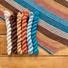 The Trastevere Shawl invites you to kick back and relax and enjoy being in the moment as you explore colours and textures through your knitting. The simple ‘slip 1, knit one’ stitch pattern creates a stitch pattern reminiscent of cobblestone streets, each colour creating a new path. The pattern works beautifully with 6 or more mini-skiens, or why not use it to go stash busting. At the end of this pattern you will find a handy checklist that will help you to determine how much yarn you will need for each section.