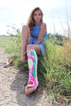 Theodora is a brave and dedicated young woman who told me that she would like to learn to walk on crutches to please the eye of our viewer, such dedication to the cause is not often seen and I am grateful to Theodora for that. Here we have a recording of her first longer attempt, aside from the few steps at our clinic, I'm sure we're seeing some great talent...