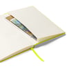 - Detalles funcionales: cierre elástico a juego, cinta marcadora y bolsillo interior expandible para guardar notas, recibos o pequeños recuerdos.