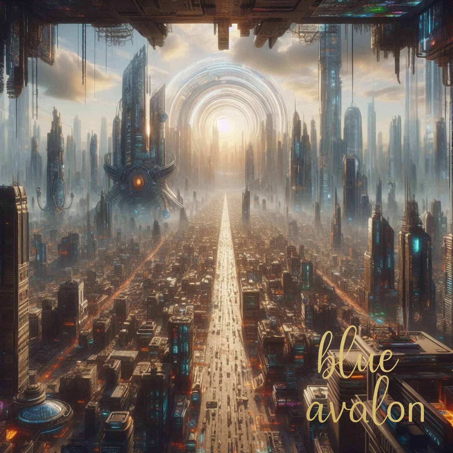 A dark, dystopian city stretches out in rigid lines. Most of the buildings are low, heavy and drab but a fewer taller structures rise from the gloom, one in particular crouching ominously between two streets as if squatting over the city like a predator or watchtower. Off in the hazy distance, a vast portal hums with unknown energy - its presence both threatening and magnetic.