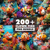Fish Sticker Design - 200 Colorful Clownfish PNG Bundle - PNG Illustrations for Crafts & Projects