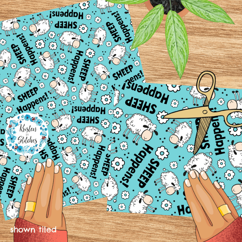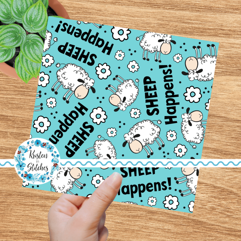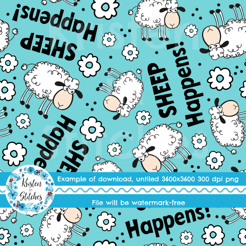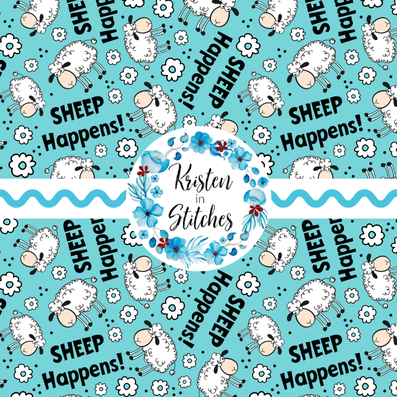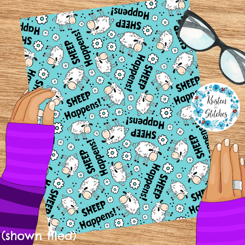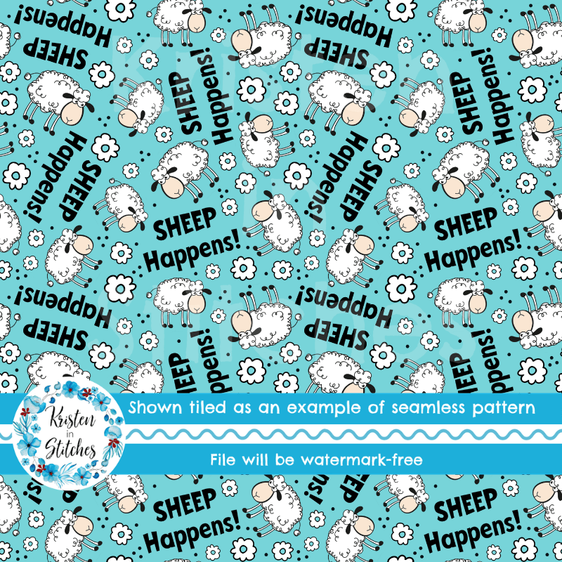 Sheep Happens Seamless Pattern, Sarcastic Animals, Blue