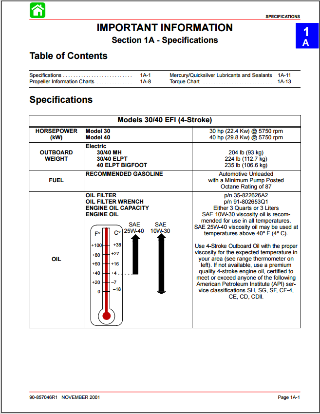1999-2001 Mercury 30 40 Fourstroke Service Manual Part No. 90-857046R1 November 2001