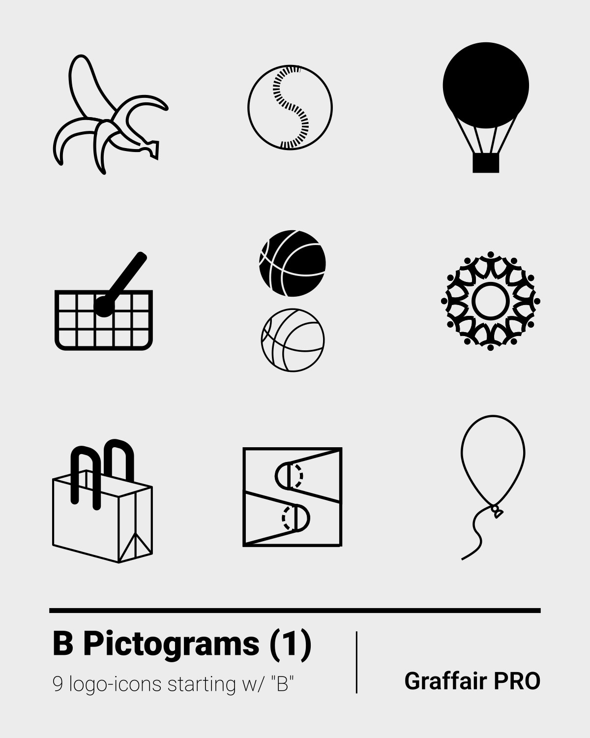 B Pictograms (1): The ninth set of 9 pictograms, each starting with a "B". These pictograms are part of the "1150 SVG Pictograms" mega bundle, which includes 1150 others.