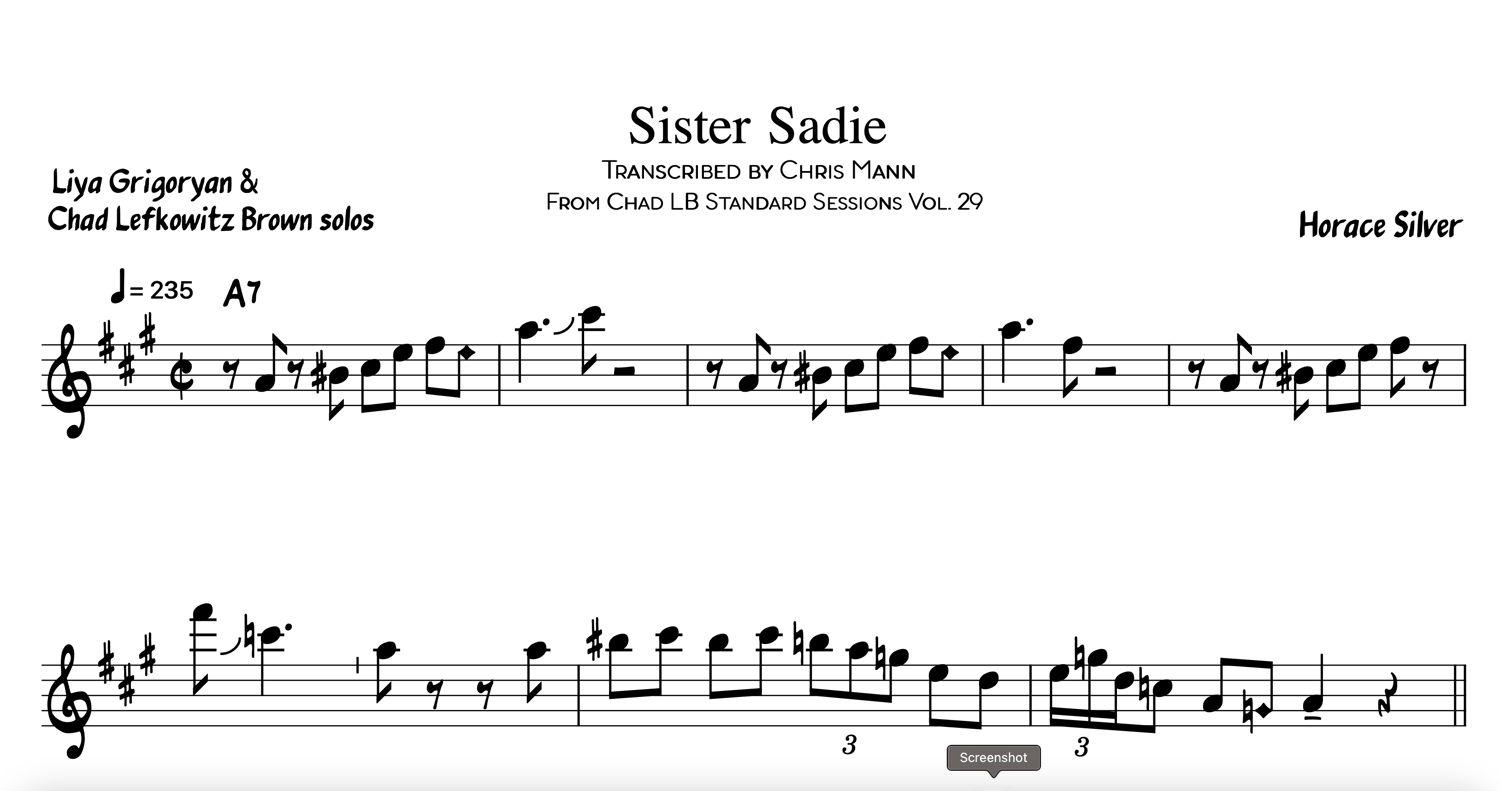 Sister Sadie - Liya Grigoryan, Chad Lefkowitz Brown, tenor sax